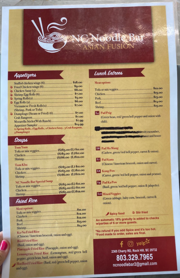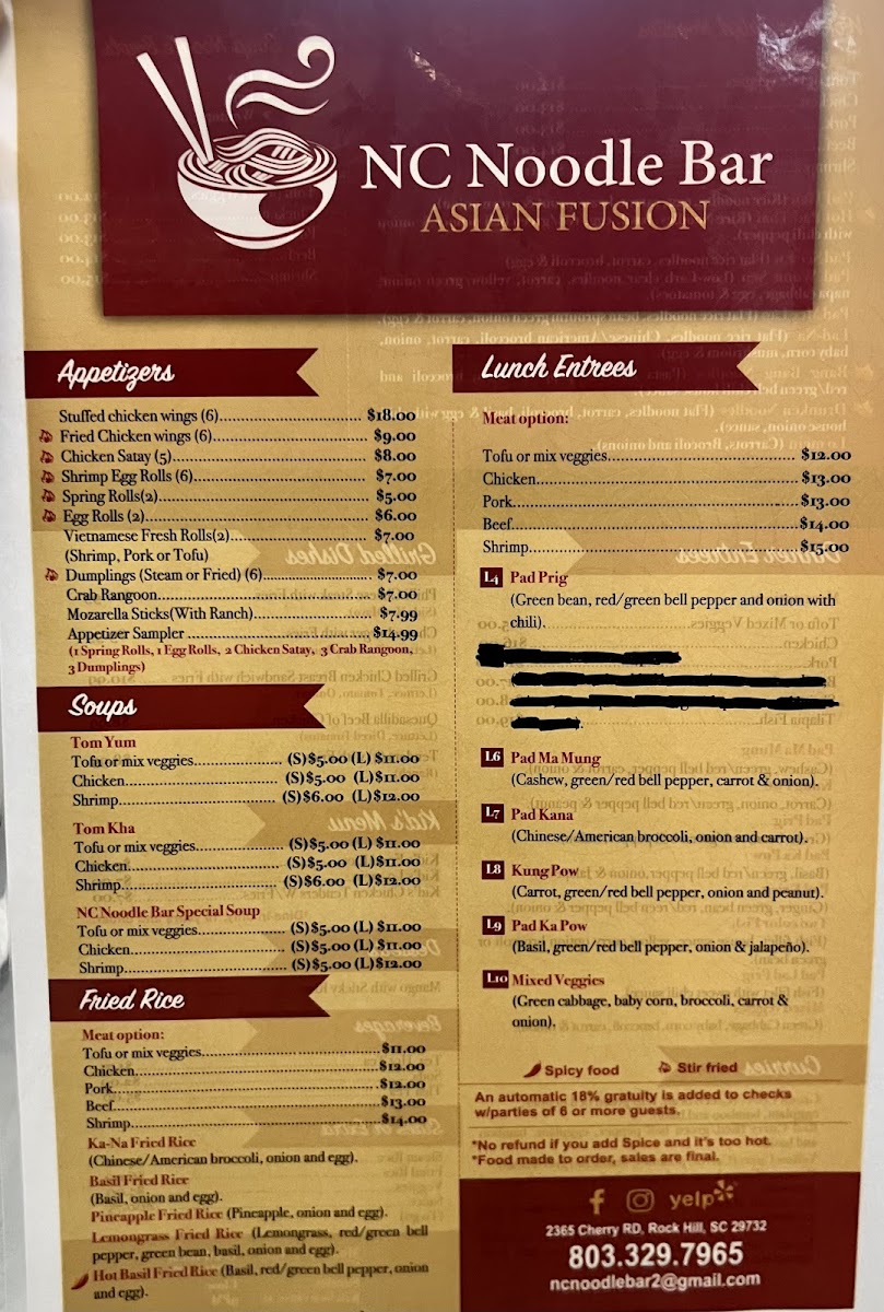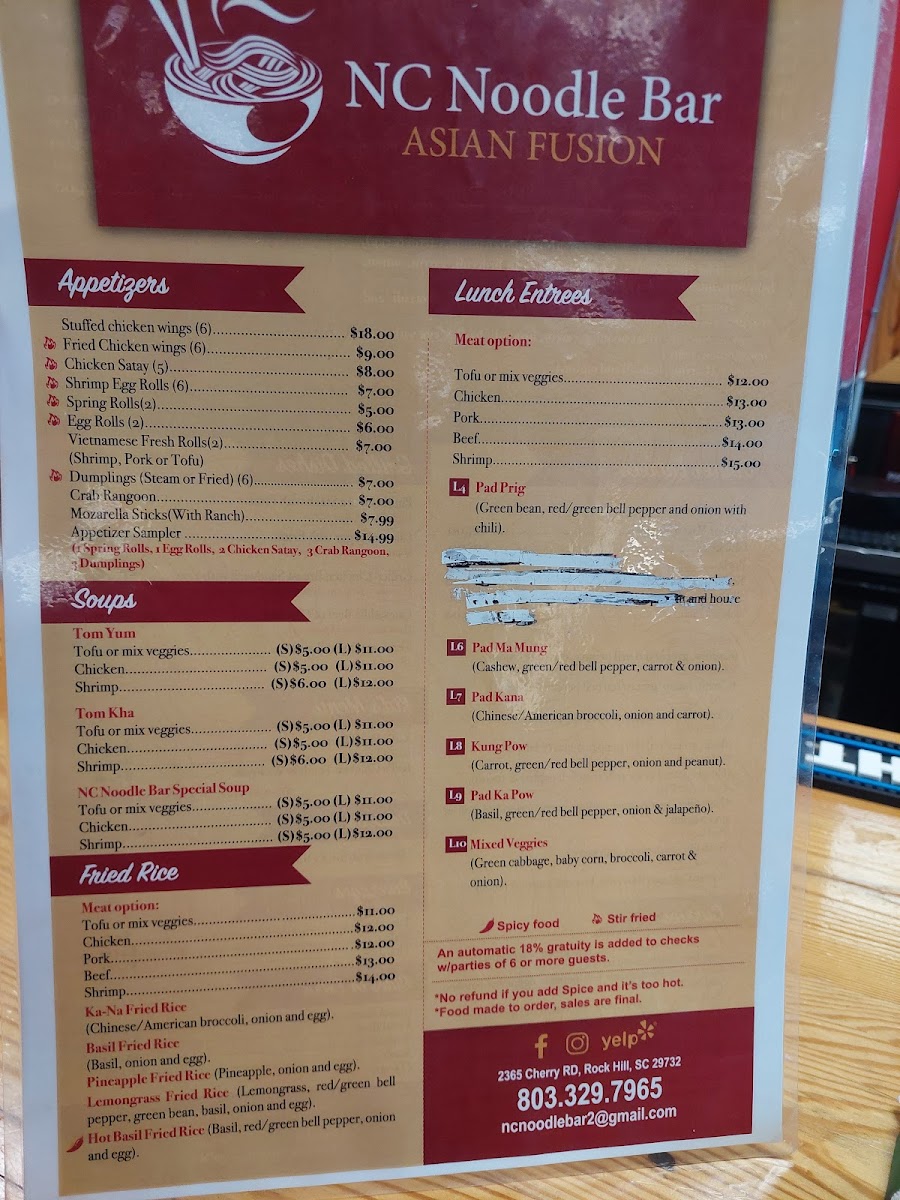 Located in the heart of Rock Hill, SC, NC Noodle Bar invites diners to explore a vibrant menu that celebrates Asian-inspired flavors. The offerings feature a delightful range of curries, noodle soups, and fried rice dishes that cater to diverse palates.